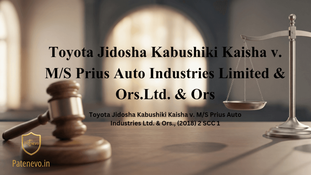 Court: Supreme Court of India Case No.: Civil Appeal Nos. 5375-5377 of 2017 Decided on: 14 December 2017 Bench: Justice Ranjan Gogoi & Justice Navin Sinha Citation: Toyota Jidosha Kabushiki Kaisha v. M/S Prius Auto Industries Ltd. & Ors., (2018) 2 SCC 1 Background The Appellant, Toyota Jidosha Kabushiki Kaisha, is a Japanese automobile manufacturer