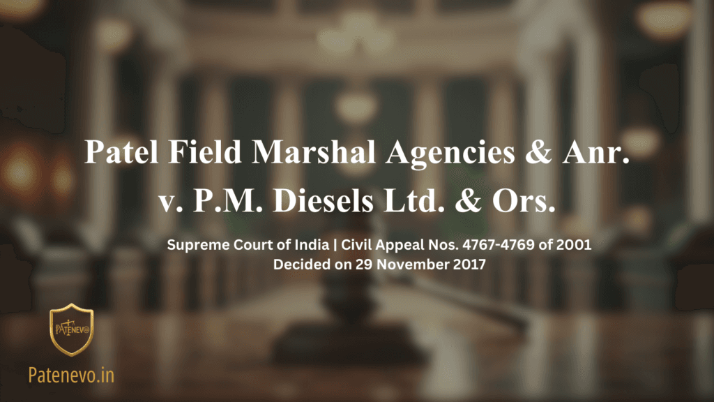 In 1982 the appellants Patel Field Marshal Agencies applied to register the mark “Marshal” for their own use. P.M. Diesels came to know of this and sent a legal notice in July 1982 asking the appellants to stop using the mark. Things remained at this level until 1989 when P.M. Diesels filed a suit before the Delhi High Court for infringement of trademark seeking a permanent injunction and rendition of accounts of profits.