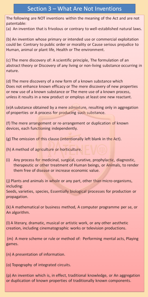 - Section 3 (What are not inventions)