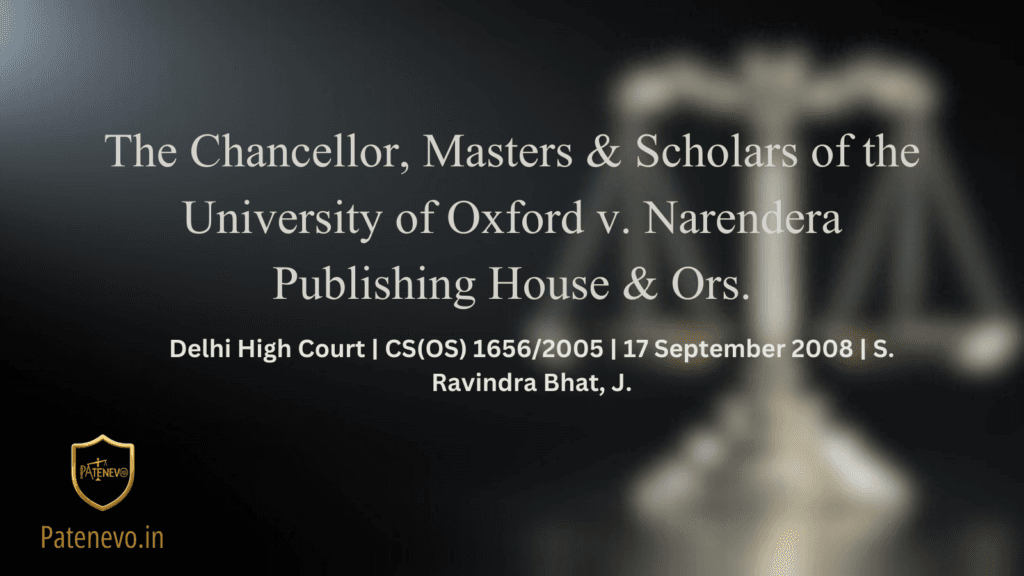 Delhi High Court | CS(OS) 1656/2005 | 17 September 2008 | S. Ravindra Bhat, J. Background The plaintiff, the University of Oxford – one of the world’s most recognized academic publishers – had been publishing educational books in India since 1912. In collaboration with the Jammu & Kashmir State Board of School Education and pursuant